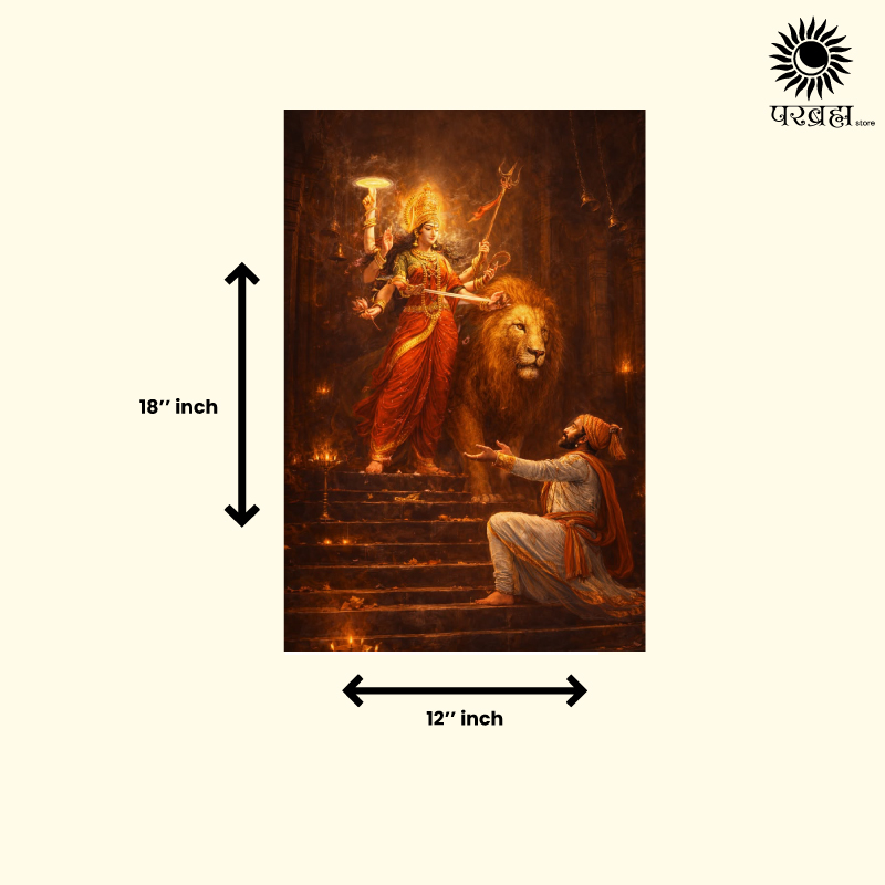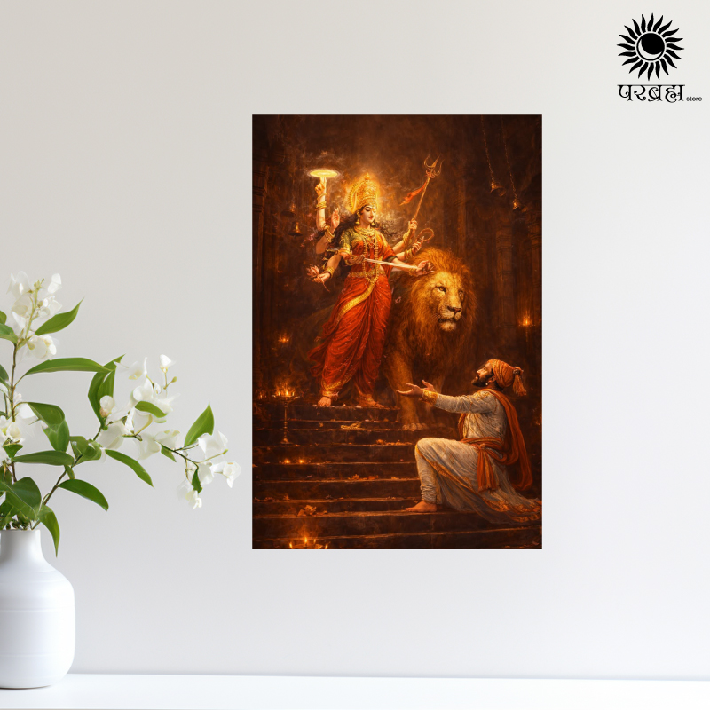 Bring home the divine power, courage, and inspiration of Chhatrapati Shivaji Maharaj with this premium Bhavani Sword Blessing Poster. This powerful artwork captures the legendary moment where Goddess Bhavani blesses Shivaji Maharaj with the sacred sword — symbolizing strength, victory, and dharma.