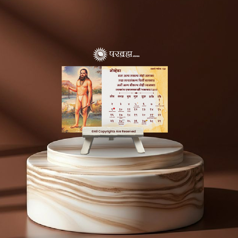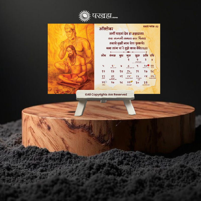 A unique 12-month desk calendar with stunning Hindu devotional artwork, Manache Shlok verses on every page. Comes with an elegant desk stand — ideal for daily spiritual inspiration.