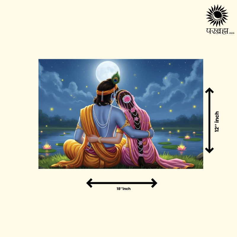 This graceful depiction of Shri Radha Krishna symbolizes divine love, harmony, and eternal devotion. A perfect spiritual wall frame to bring peace, love, and positivity into your home or workspace.